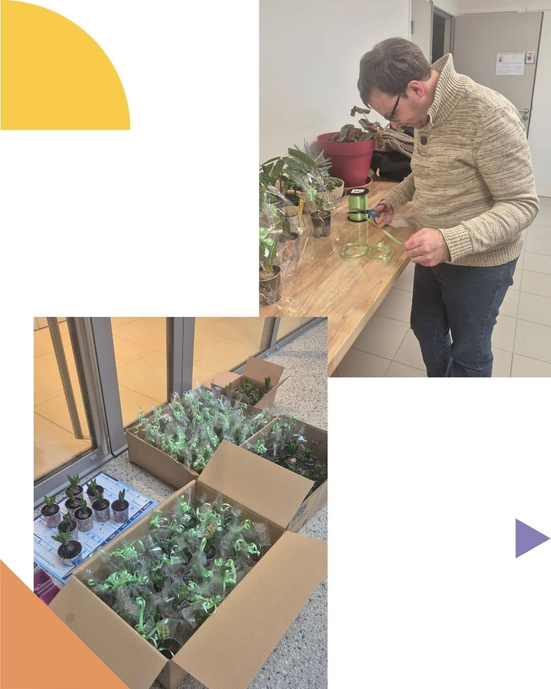 🪻 L’emballage de 93 jacinthes avec l’IME pour la vente du Téléthon